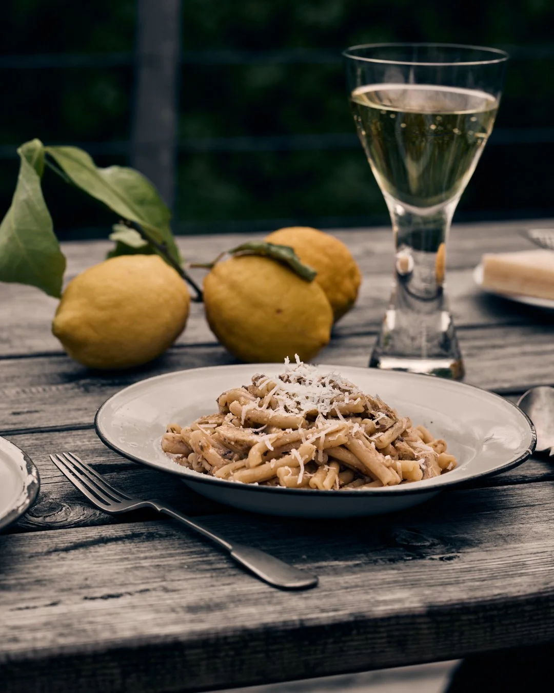 The first evening settles softly, marked not by urgency but by ritual. A simple plate of pasta, finished with lemon and a snowfall of cheese, eaten outdoors as the light begins to dim. A glass of something chilled catches the last of the day. It is here, in this quiet beginning, that the body exhales, and the stay truly begins.